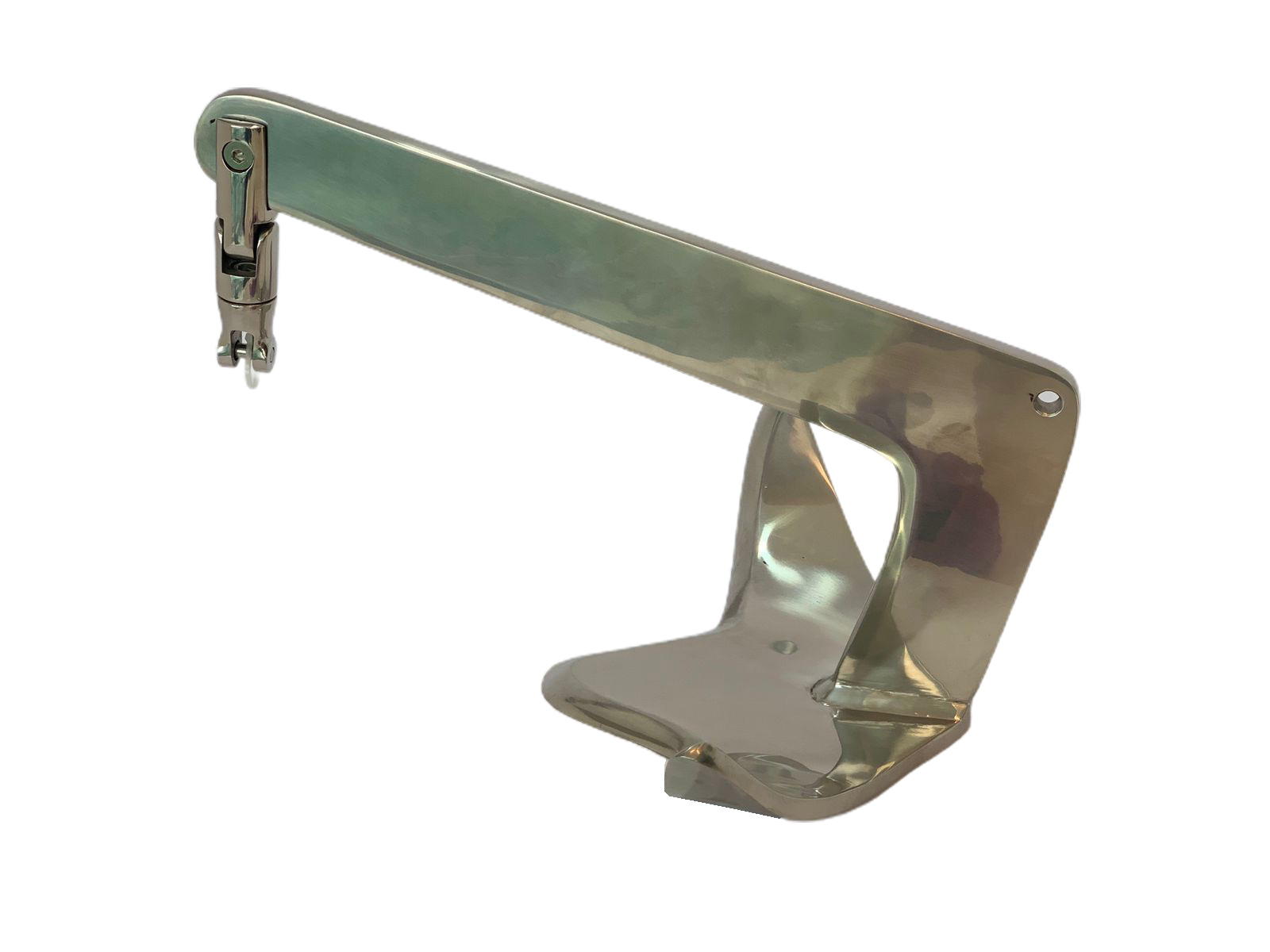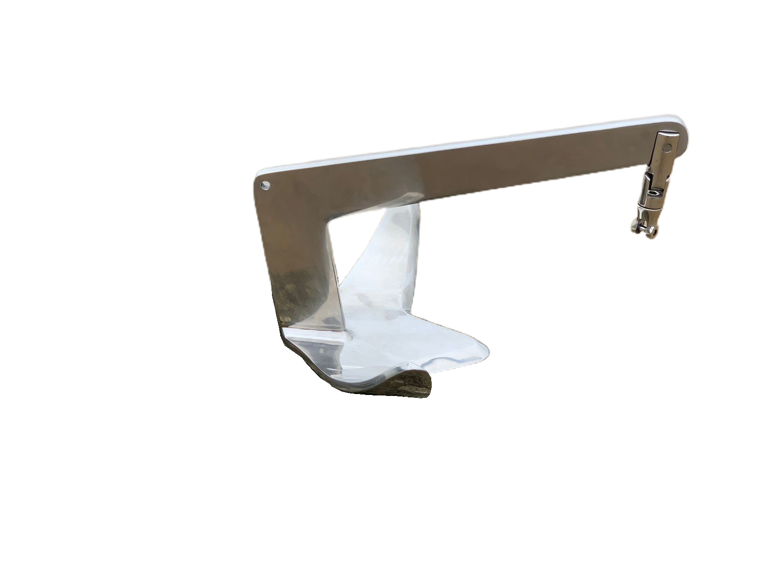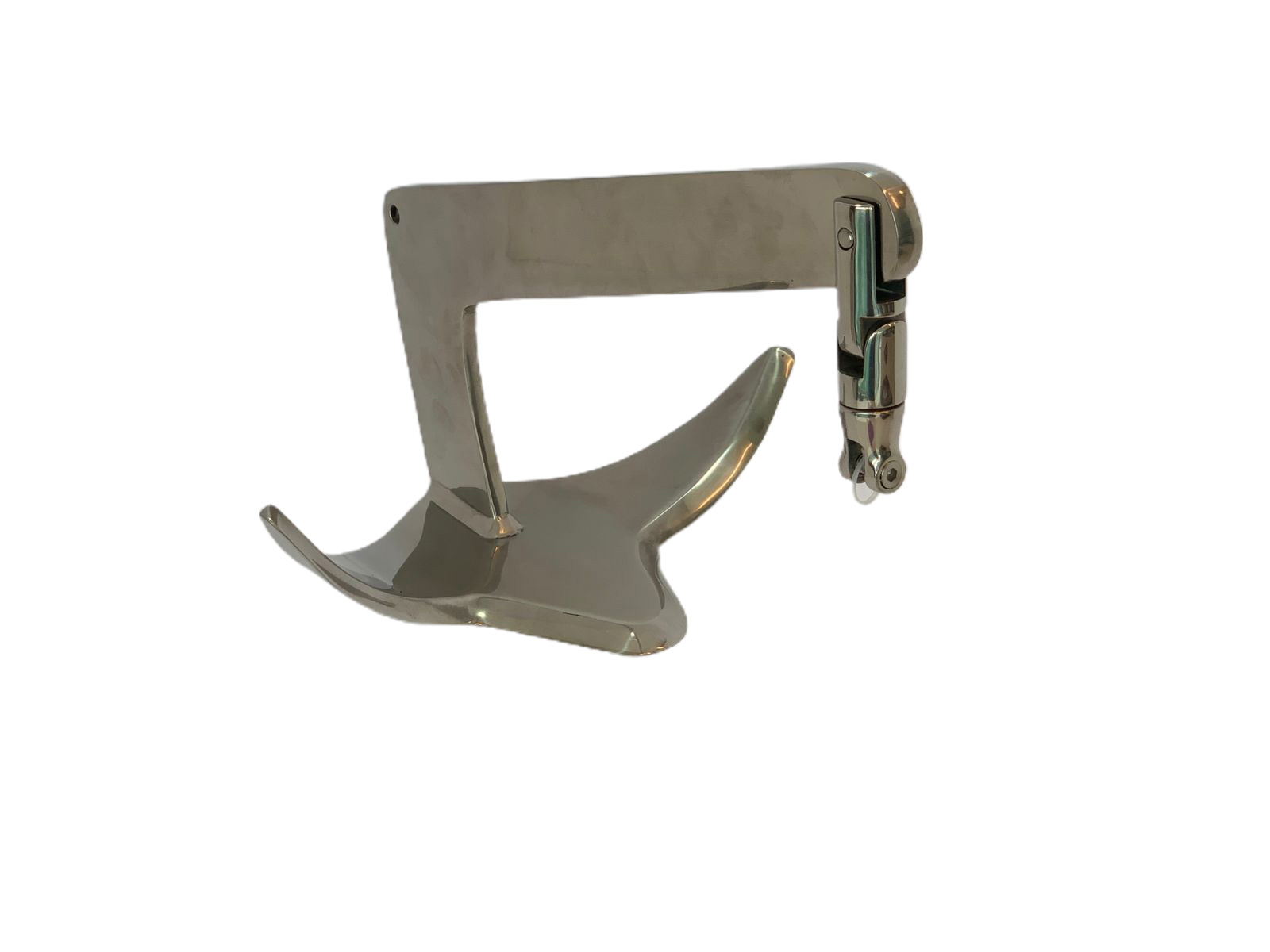Âncora Bruce em aço inox 5Kg, em aço inoxidável micro fundido por inteiro e de alto brilho com, Conector – distorcedor 6-8mm, em aço inox 316 com pino, distorcedor reforçado ideal para ser utilizado em popa ou proa, para mar e àgua doce, fundo de areia, cascalho e lama.